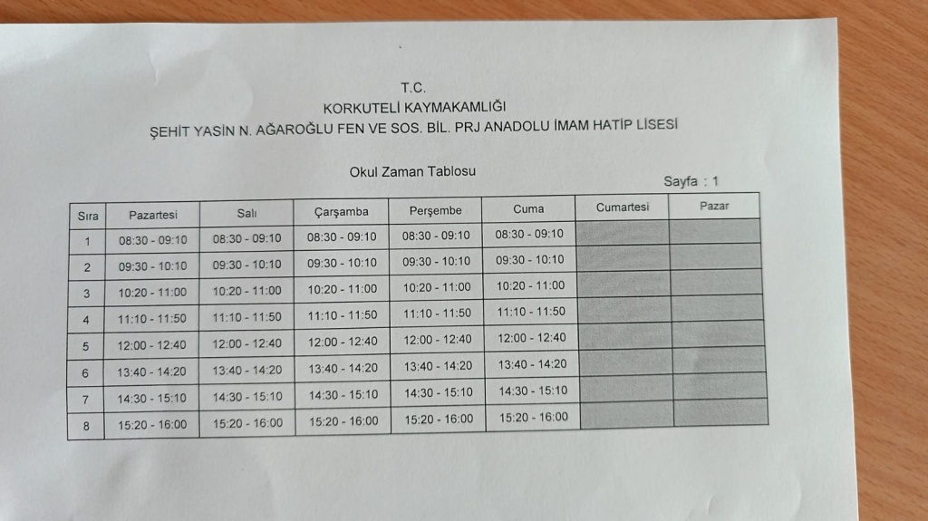 2025-2026 Eğitim Öğretim Yılı ders giriş çıkış saatlerimiz belirlenmiştir.